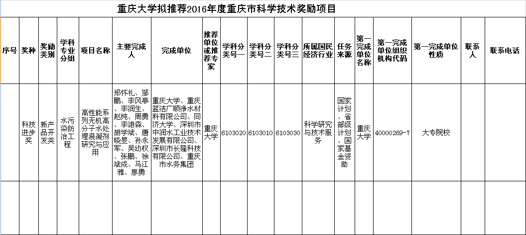 《公司參與2016年度重慶市科學技術獎勵項目評審的公示》